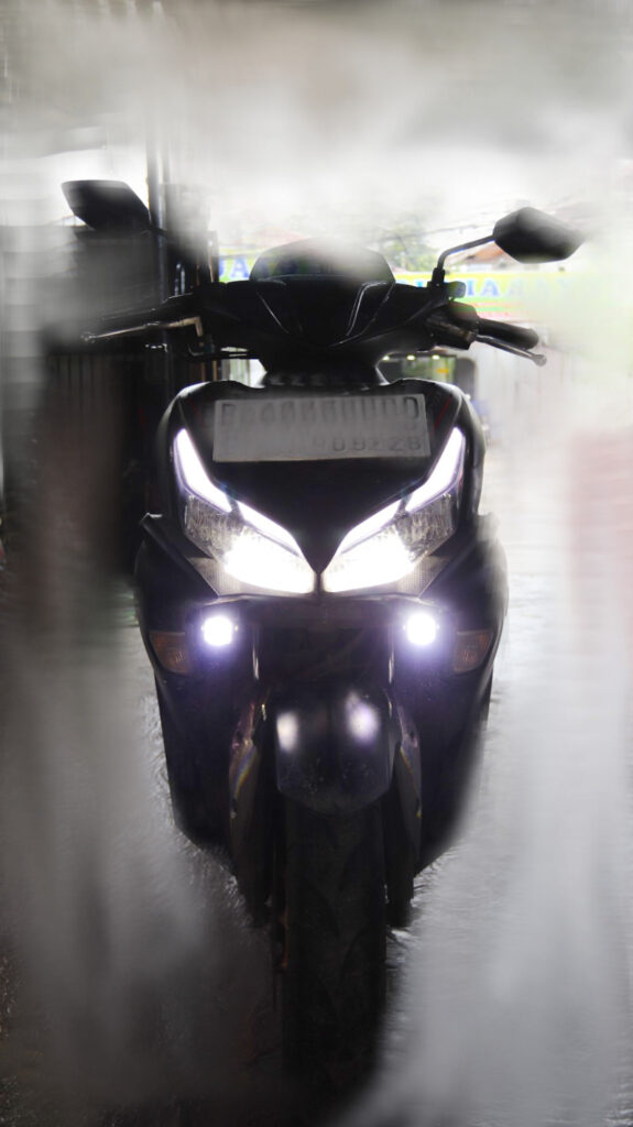 Jika di waktu sebelumnya ada Honda ADV, kini giliran salah satu pesaingnya yakni Yamaha Aerox yang terlihat dalam antrean pemasangan lampu projector di bengkel Yoong Motor Jakarta.