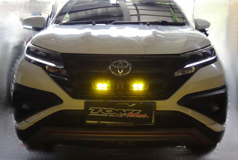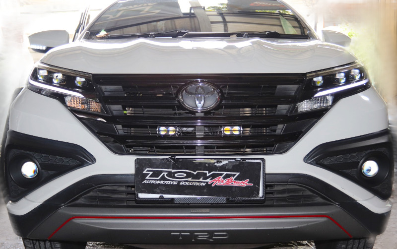 Pelanggan bengkel spesialis modifikasi lampu Yoong Motor Jakarta ini memilih lampu mini projector keluaran dari HVT dengan spesifikasi model 2 mata. Pemasangan lampu mini projector pada Toyota Rush hanya perlu waktu 2 jam.