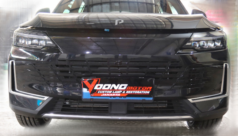 Beberapa waktu lalu di bengkel Yoong Motor Jakarta nampak Polytron Skyworth G3 sedang dalam proses pasang mini projector Saber SR Aero V2 untuk bagian bawah bumper sementara di bagian atas tepatnya di area dalam gril terpasang Hypervision HVT mata dua.